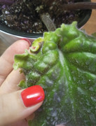 Вначале у неё один лист был практически темный. Оборвала его. Побрызгала фитоспорином М. Разведённым в воде. И пролила грунт. Через несколько дней заметила, что листья которые были рядом с тем, что оборвала, имеют небольшие темные пятна, оборвала эти три листа. Один лист проглядела, потому что пятна пока маленькие, решила сфотографировать и показать. Что с фиалкой происходит не знаю. Пересадила в другую землю и новый горшок, старую землю с фиалки убрала, корни подержала в разведённом в воде фитоспорине. Посадила, немного полила фитоспорином. Читала, что фитоспорин против всякого рода грибковых гнилей, вот пролила и корни подержала, посадила в другой грунт. Но что с ней, я не знаю. Подскажите пожалуйста у кого есть фиалки, что это может быть? Чем обработать? Розетка сама в центре зелёная, листья упругие.